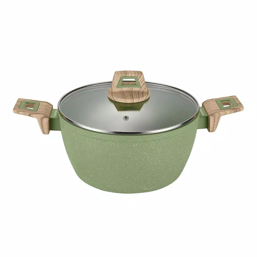 - Attractive olive stone design with a combination of speckled ceramic coating and beautiful light wood grain