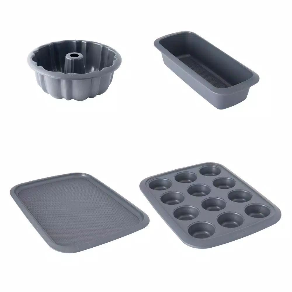 This set includes all the items you could need to make all types of homemade desserts. Each piece features a top of the line non-stick coating, ensuring that every dessert comes out with ease and cleaning requires no harsh scrubbing. The lightweight carbon steel evenly bakes every dish. With these pans you will surely impress your friends and family with your baked goods.