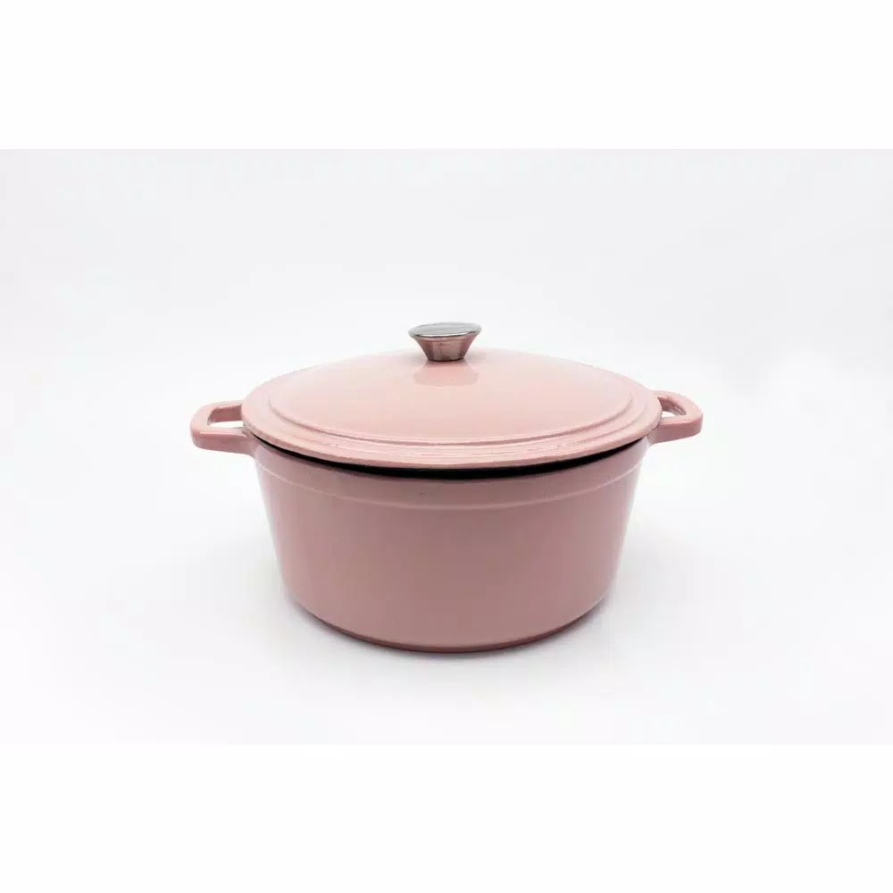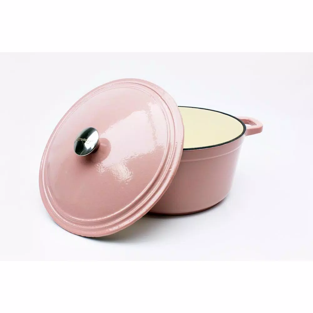 The 7qt. Cast Iron pink stockpot dish is a modern collection that marries function, design and innovative use of materials to create an outstanding line of cast iron cookware. The cast iron is marked by pure lines giving each product itβs own identity and functionality. The covered dishes are ideal for slow cooking stews, braising, baking and so much more. It is enameled inside and out and suitable for all heat sources including, gas, electric, induction and ceramic.
