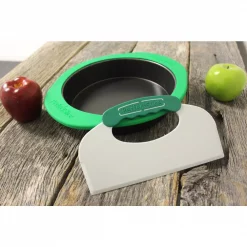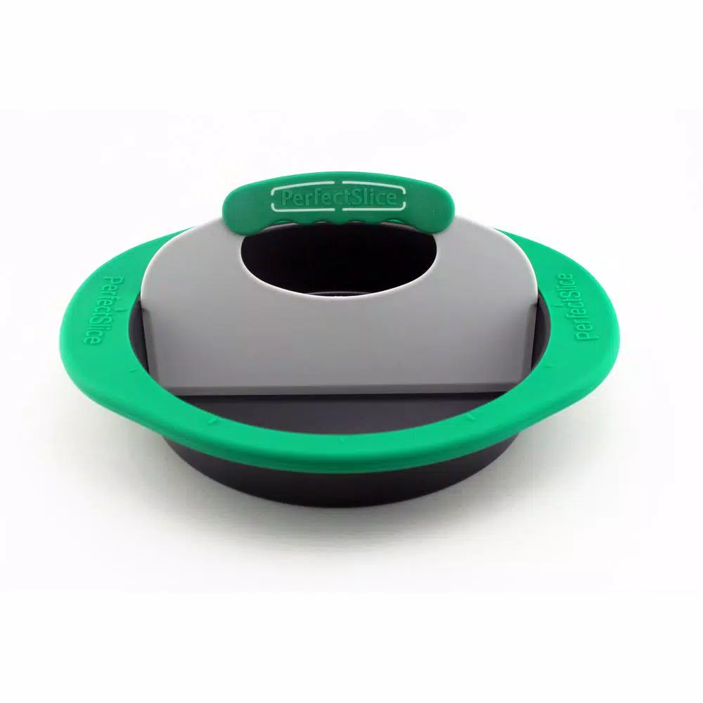 The Perfect Slice round cake pan is more than just a baking pan, itβs also a convenient way to ensure your cakes and brownies are perfectly sliced every time. The unique guideline grid around the outer edges of the pan allows you to easily line up the included Perfect Slice cutting tool and cut the perfect portion size. Make perfectly-sized slices every time. Dishwasher safe.