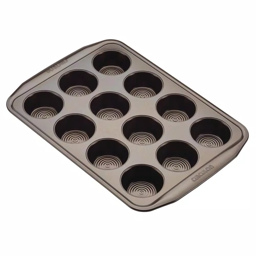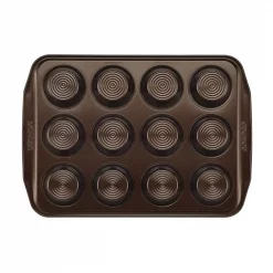 Superior nonstick technology and solution-driven design set Circulon bakeware apart from other nonstick bakeware. The technology begins with raised circles on the baking surface that are coated with PFOA-free premium-quality nonstick. The rolled-rim pan design includes distinctive chocolate brown color inside and out and wide handles for plenty of grip, even with bulky oven mitts. Mix all this together and thatβs the recipe for lifelong baking enjoyment, Whether youβre a regular muffin maker or just a once-in-a-while cupcake baker. And once the baking done, all that exceptional nonstick technology keeps the cleanup easy. The pan is ideal for everything from made-from-a-mix cupcakes and start-from-scratch muffins to mini-quiches and other savory treats. And by reducing the need for oiling and greasing the bakeware interior, this muffin pan is ideal for delicious, healthy gluten-free cupcakes for the kids or a batch of densely-delicious hand-milled-bran muffins. Oven safe to 450Β°F, this bakeware brings the Circulon kitchen-time-and-energy-saving approach to baking home. And with a Hassle-Free Lifetime Guarantee, the muffin pan truly delivers for the well-rounded life.
