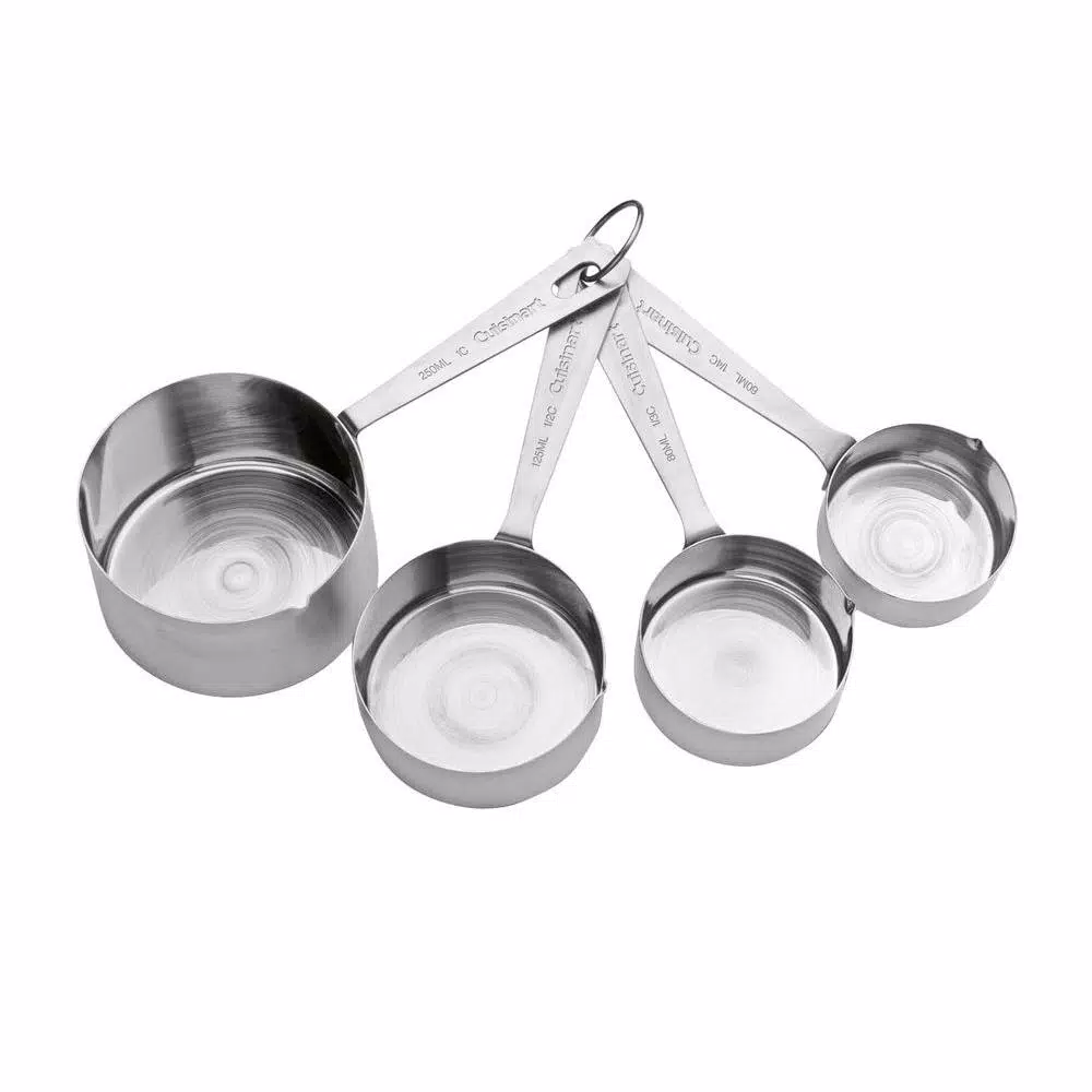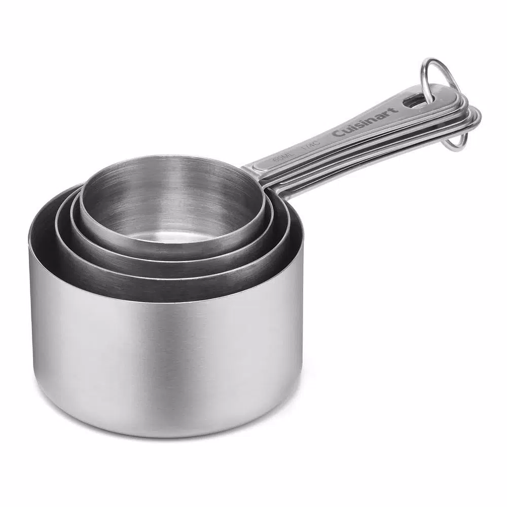 Set of 4 Cuisinart Stainless Steel Measuring Cups include Storage ring. Long lasting and durable. A must-have for any cook.