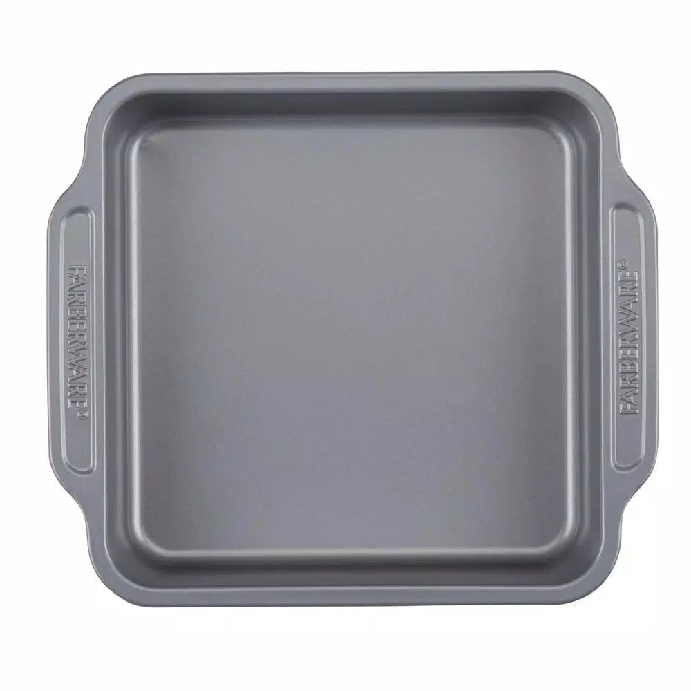 βReady, set, bakeβ¦and roast, toast, and oven-cook to everyoneβs delight, with the wide range of essential baking pans in the Farberware Nonstick Bakeware 8-Piece Set. Farberware has provided over a century of reliability, value, and performance to generations of home bakers. Every sturdy and dependable pan in this bakeware set upholds that tradition. Featuring solid-gauge steel construction, the pans feature rolled rim construction to help resist warping and dinging. And long-lasting nonstick inside and out delivers great food release with quick cleanup. This Farberware bakeware set includes an array of essential baking pans for cakes, cookies, muffins, cupcakes, and more. Use the pairs of round and square cake pans to create double-layer cakes, and the rectangular cake pan for sheet cakes, brownies, bars, lasagnas and casseroles. The muffin and cupcake pan is versatile enough to oven-bake mini quiches and savory small bites, and the loaf pan isnβt just for breads-itβs ideal for entrees like meatloaf and even macβnβcheese. Each pan is oven safe to 450Β°F, and the set is dishwasher safe for quick cleanup, although hand washing is recommended for the best and longest lasting performance. Perfect for sweet treats and savory dishes, the versatile, durable Farberware Nonstick Bakeware 8-Piece Set makes baking and oven-cooking sweeter for every busy home cook and baker.β