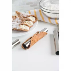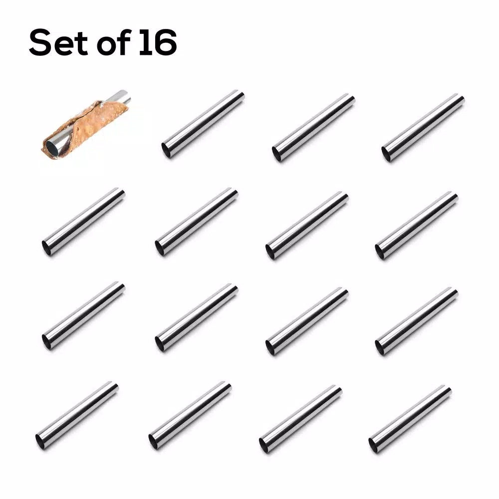 This Sicilian staple doesnβt have to be a rare treat anymore. Find out how easy it is to create these sweet, creamy pastries right at home with our Cannoli Forms. Made of lightweight, yet durable stainless steel, this set of sixteen straight, uniform tubes are perfect for shaping homemade cannolis. To use, simply wrap the dough around the form, seal, and fry. Achieve a beautifully shaped pastry, filled with ricotta and dusted with powdered sugar, for the perfect ending to a traditional Italian dinner. These stainless steel tubes can also be wrapped with pretzel, bread, croissant or danish dough and baked to perfection. When cool, simply remove the form and stuff with your favorite filling.