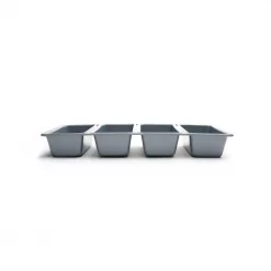 - Overall dimensions: 6.5 in. x 14.5 in. x 2 in., each pan: 5.5 in. x 3 in. x 2 in.