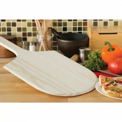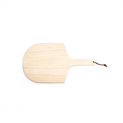 Pizza is a family favorite, and this Wooden Pizza Paddle is a must for perfect pies at home. This hardwood pizza paddle features a tapered edge to easily slide pizza from counter to pizza pan or from baking stone to serving dish. It includes a leather loop on the handle for hanging when not in use. Display in your kitchen to show off your pizza professionalism. Paddle is easy to handle and allows hassle-free transferring without losing half of your pie along the way. Also can be used to cut your slices on and serve on. Save yourself the drive and cook pizzeria-style in your own home.