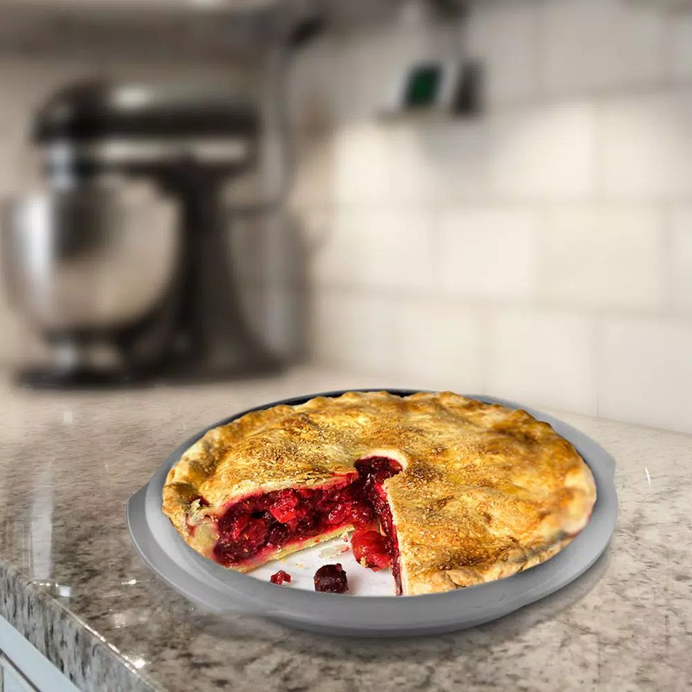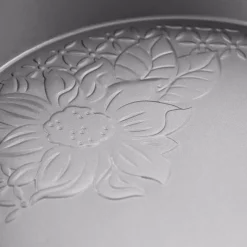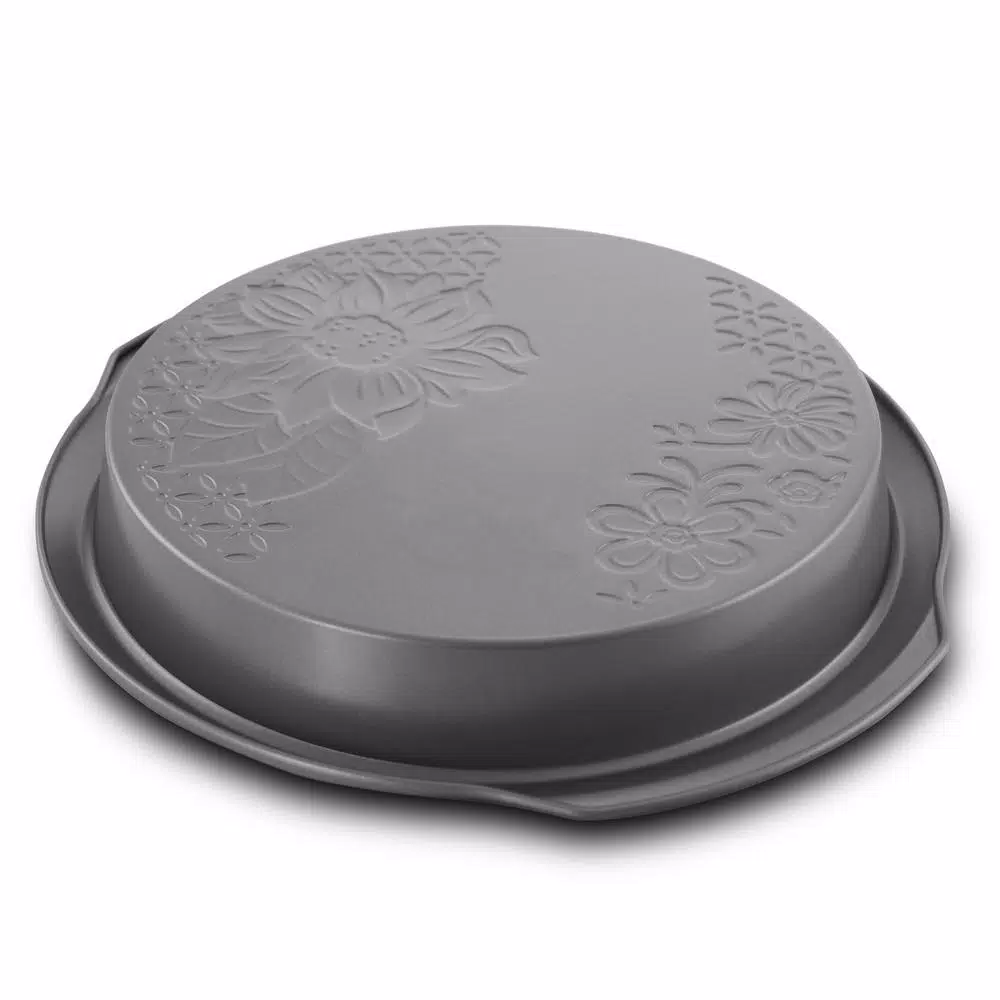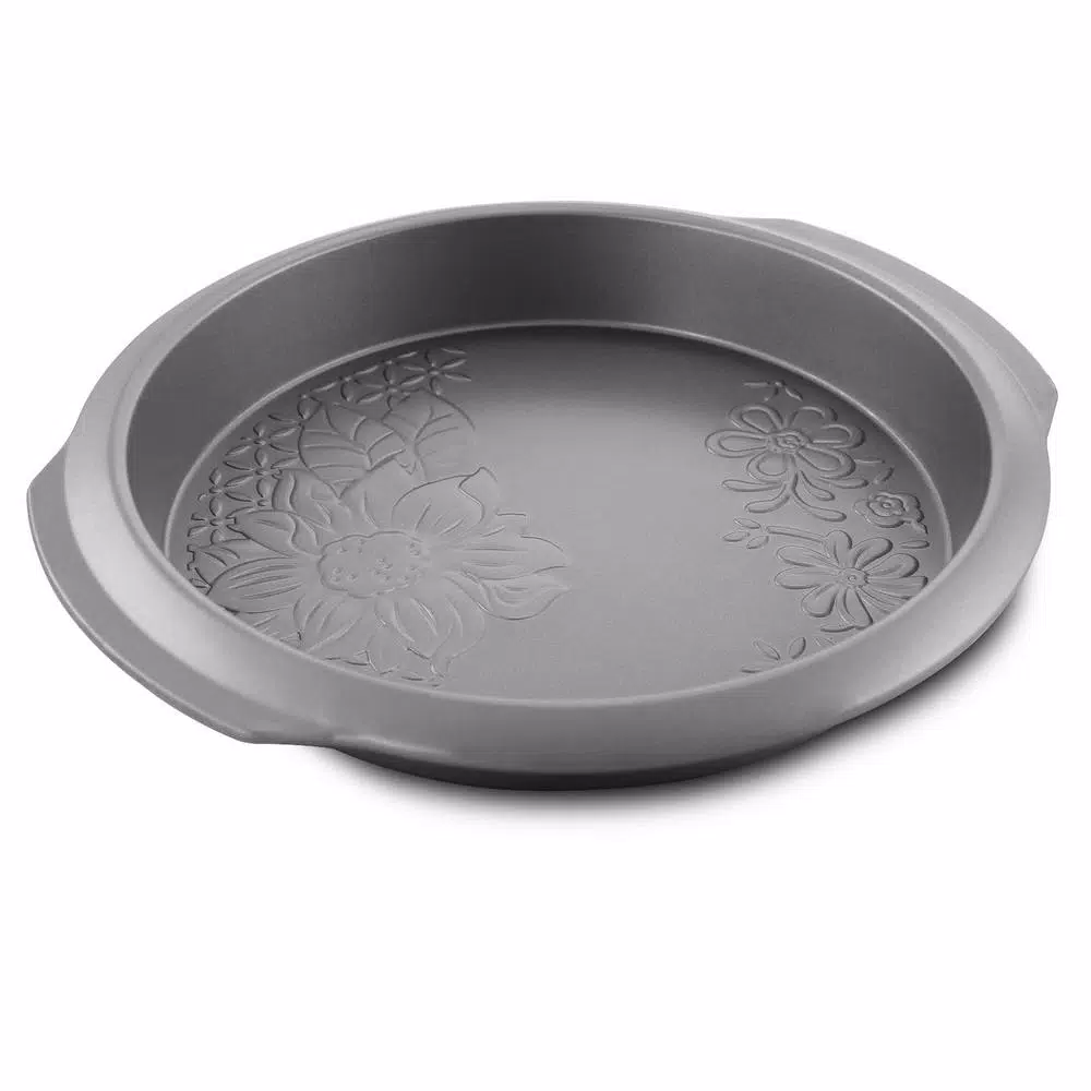 Gibson Country Kitchen 9inch Cake Pan Round Silver Embossed Carbon Stee Non-Stick Bakeware is ideal for todayβs cooks. The full line is constructed of heavy gauge aluminized steel to provide even heat distribution and consistent baking results. The nonstick interior and exterior ensure easy food release and cleanup, and extra-thick rolled edges prevent warping. Hand wash Only