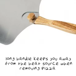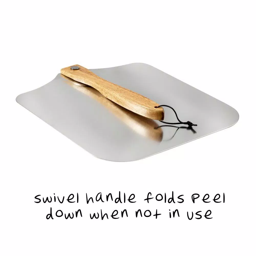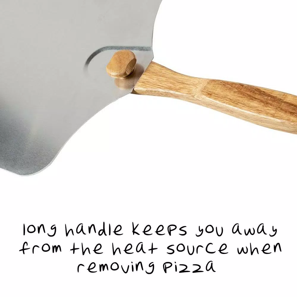 There are pizza lovers and then there are PIZZA LOVERS. For those CAPS-LOCK pizza lovers, this 14-inch by 16-inch pizza peel is the ideal choice for your weekly pizza party, whether youβre cooking up a Chicago style deep dish pizza or reheating your favorite delivery. A large carrying surface and long handle let you mix and mingle with your guests while shuffling pizzas of all shapes and sizes in and out of the oven. And with that new workout kick youβre on, you never forget the veggies anymore, and you can slip them in and out of the oven with ease with the easy-glide aluminum peel. When youβre done, the handle folds in and provides easy storage.