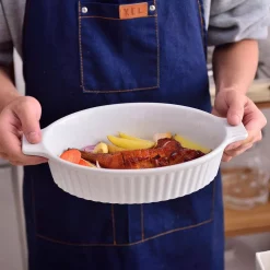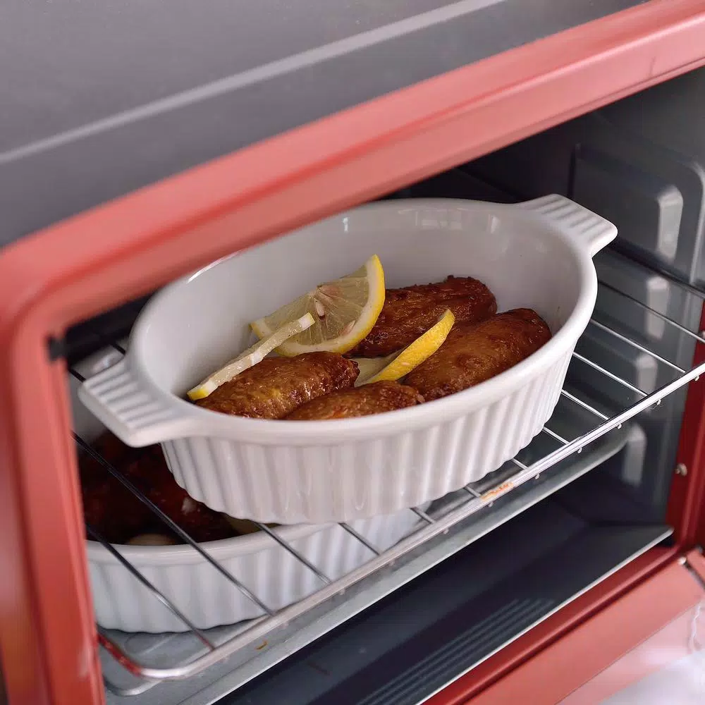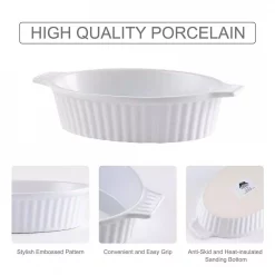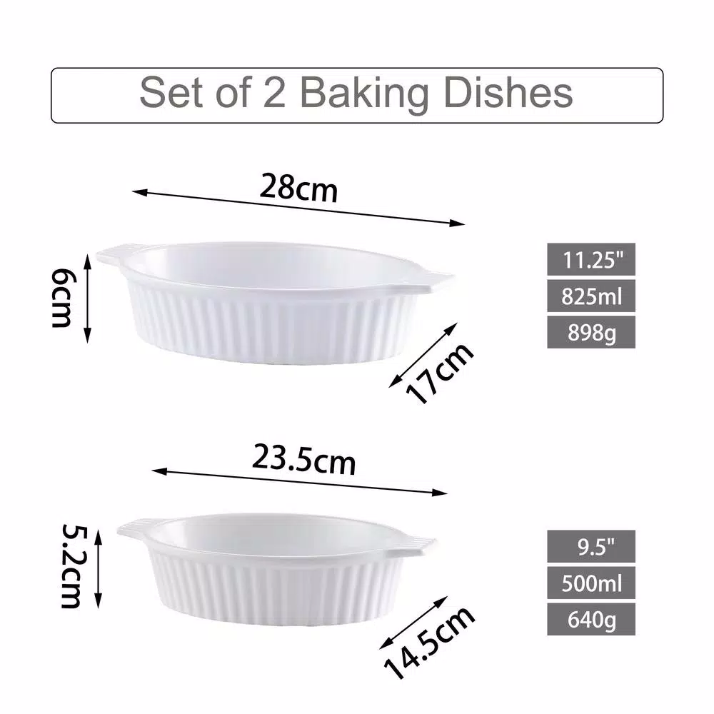 There is no denying the fact that delicious food is one of the most prominent weakness of everyone. A plate full of exquisite dishes is something which people even dream about in their sleep. And if you are foodie then what to say more, food lovers donβt eat to live. Rather they live to eat delicious food or dishes. So exquisite bake ware pans are important part to their attention. Oval white porcelain baking pans including 9.5 in. and 11.25 in. bake ware pans. Porcelain Bake dishes at different sizes and functions fit for most food in daily life.