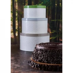 - DURABLE STEEL: Made from durable, rust-resistant, thick-coated steel, set of 3 cake tins with lids ideal for storing and transporting a range of baked goods; ensure cakes, cookies, pastries and other items stay fresh