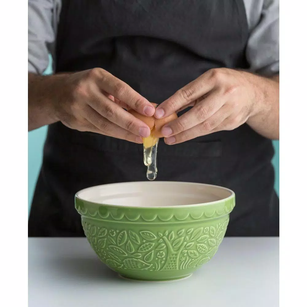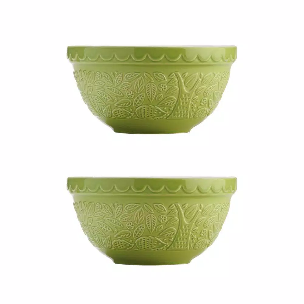 The Mason Cash In the Forest Hedgehog Green Mixing Bowl Set of 2 is perfect for pudding and cookie dough mixes. Inspired by folk tales of the mid 19th Century, the In the Forest range of mixing bowls are intricately embossed with forest scenes featuring favorite forest animals. The range includes several nesting mixing bowls, each one perfect for different mixtures as well as providing easy storage.