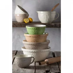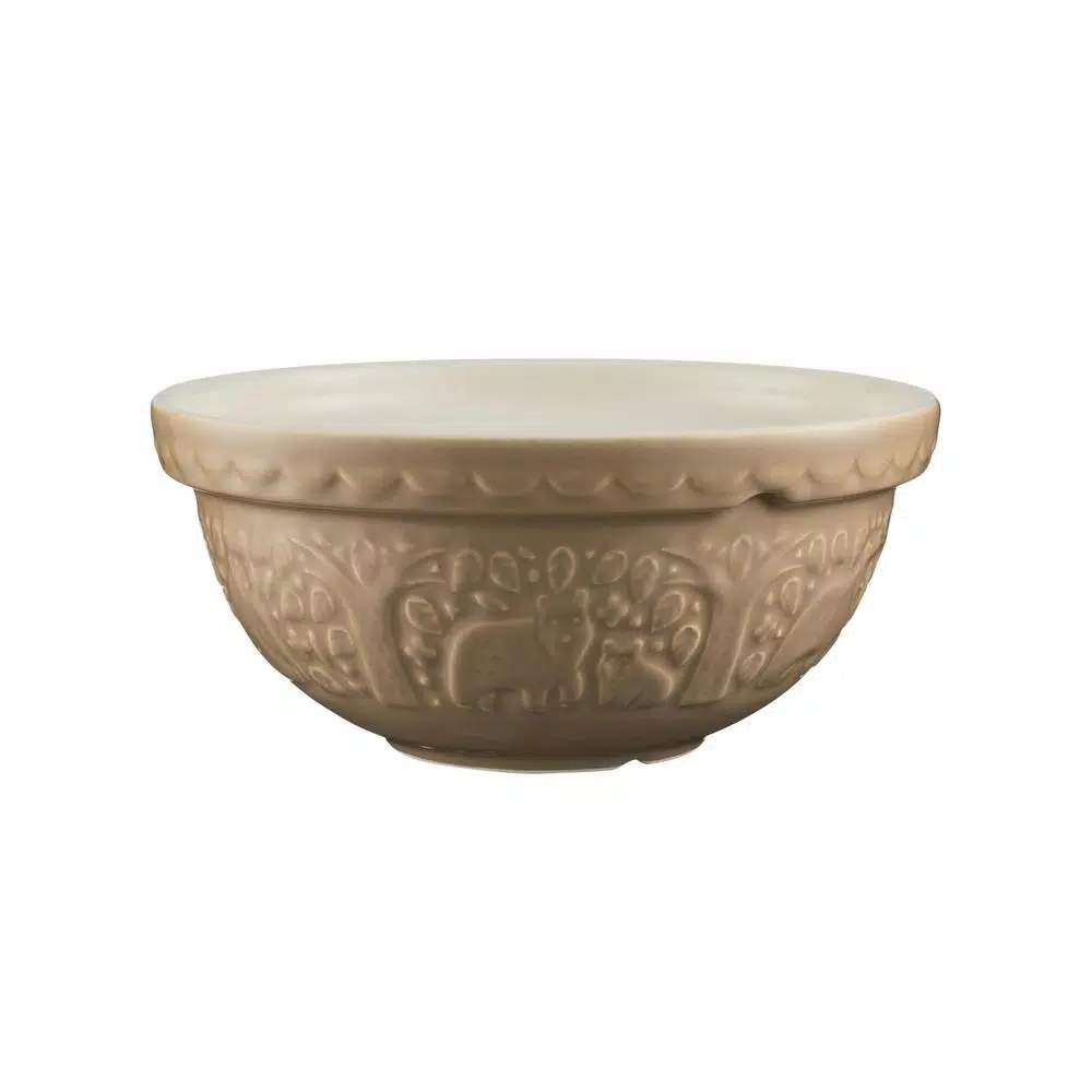 The Mason Cash S24 In the Forest Bear Cane Mixing Bowl is perfect for bread, cake, cookie, pastry and pudding mixes. Inspired by folk tales of the mid 19th Century, the In the Forest range of mixing bowls are intricately embossed with forest scenes featuring favorite forest animals. The range includes four nesting mixing bowls, each one perfect for different mixtures as well as providing easy storage.