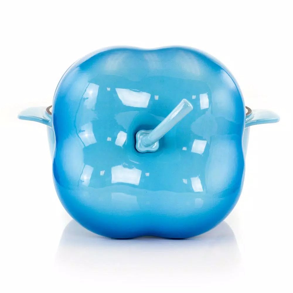 Cook in style with the MegaChef Pepper Shaped Enameled Cast Iron Casserole in Blue. It features a unique bell pepper shaped base that makes f or a stunning presentation when serving guest. The f orm brings visual flav or to the everyday home kitchen. The non-stick enamel coating makes it easier to cutback on fats and oils f or healthier dishes. With a cast iron lid, any meal can cook evenly through the entire pot. Cook to your heartβs content no matter how strong or acidic the ingredients are. This potβs outer coating protects the cast iron interi or from c orrosive material while providing all the advantages to cast iron cooking. Concoct sav ory stews, mesmerizing macn cheese or ridiculously good risotto.