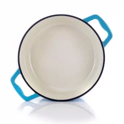 The MegaChef 10.25 in. Round Enameled Cast Iron Casserole with Lid in Blue makes f or an ideal cooking essential f or any home kitchen. Made of durable enameled cast iron f or proper longevity. The cooking potβs enameled non-stick surface allows f or easier and healthier cooking by cutting back on oils and fats. Get the most flav or out of meats and sauces; the cast iron lid helps evenly distribute heat through out the entire pot. The potβs lovely gradient of col or brings life through out the kitchen and dinner table. Never fret over acidic ingredients, the cookwareβs enameled coating protects the cast iron material while providing all the benefits of it. Take full advantage of this casserole to concoct sav ory stews, mesmerizing mac n cheese or a perfect pot roast