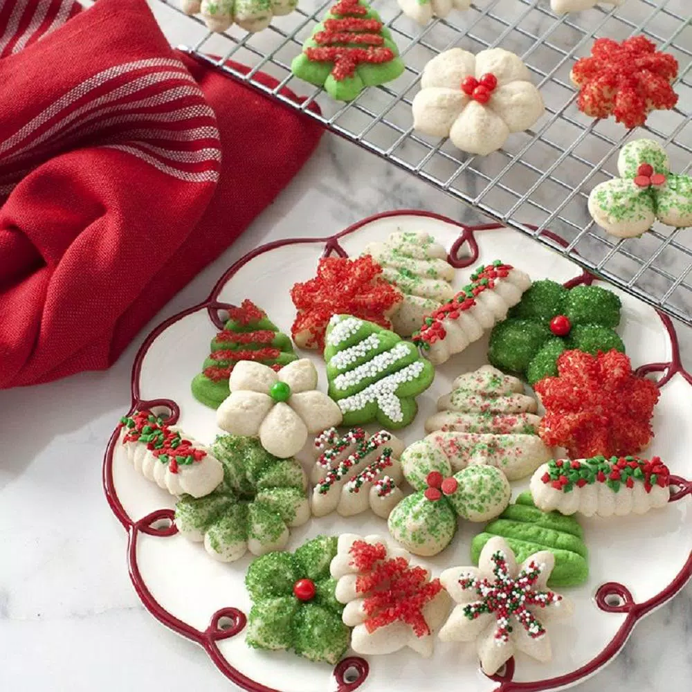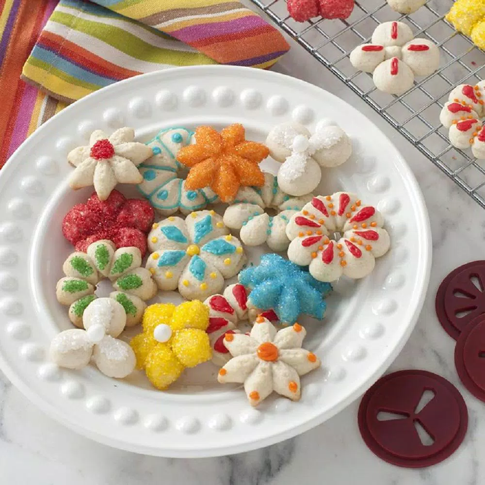 - Use a Spritz Cookie recipe only, dough must be the correct consistency to be pressed out and to hold shape while baking; find recipe at https://www.nordicware.com/recipe/spritz-cookies/