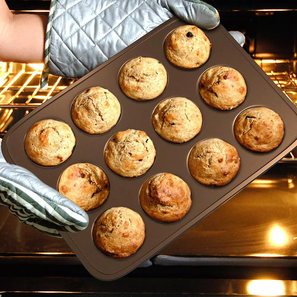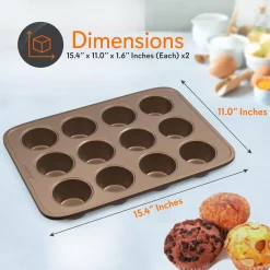 NutriChef was created on the principle that healthy home cooking should be attainable to all, regardless of skill level and economic status. Starting in 2014, we noticed the disconnect in our lives and in the lives of those around us. We were so busy, always rushing forward and our health and personal lives suffered. We needed to find some way to slow down and put our health first, all without sacrificing convenience or taste. Could we somehow create healthier versions of our favorite foods, easily in our own kitchens. The answer was a resounding yes and NutriChef was born. Whatβs in the Box: 2-oven muffin pans. Technical Specs: temperature resistance: Up to 446Β° Fahrenheit (230Β° Celsius) metal tray thickness: 0.6mm. Construction material: engineered carbon steel metal alloy. Muffin pan size (L x W x H): 15.4 in. x 11.0 in. x 1.6 in. (each).