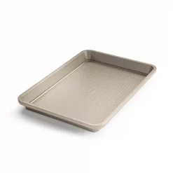 Two Commercial Grade Sheet Pans for a lifetime of baking adventures! The line features 11 pieces from sheet and cake pans to muffin tins and loaf pans. Weβve even got a pizza wheel. The line is designed to bring to your kitchen the best-in-class quality and performance found in commercial bakeware. Each piece is made from heavy-Gauge aluminized steel that provides stability, even heat distribution and lasting durability.