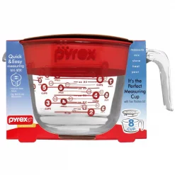 Add a measure of consistency to your kitchen with the Pyrex 8-Cup Measuring Cup with cover that is sturdy and easy-to-read. Measurement indicators and the easy to grab handle are designed to make it easy to mix, measure and pour. A distinctly American brand, Pyrex has been used by generations of cooks and bakers from coast to coast.