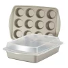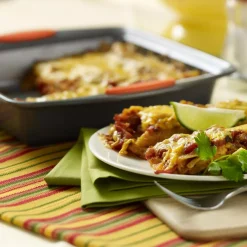 The Rachael Ray Oven Lovin’ 9 in. Baking Pan features an aluminum build that is durable and nonstick surfaces that help quickly release baked goods from the pan. Its extra-wide handles feature silicone pads for comfortable and secure gripping. This baking pan is safe for use in the oven up to 500 degrees Fahrenheit.