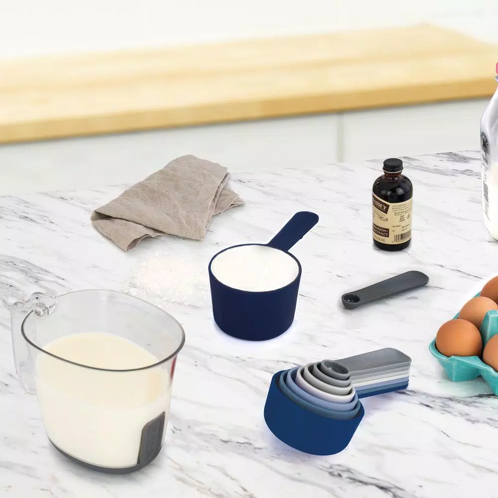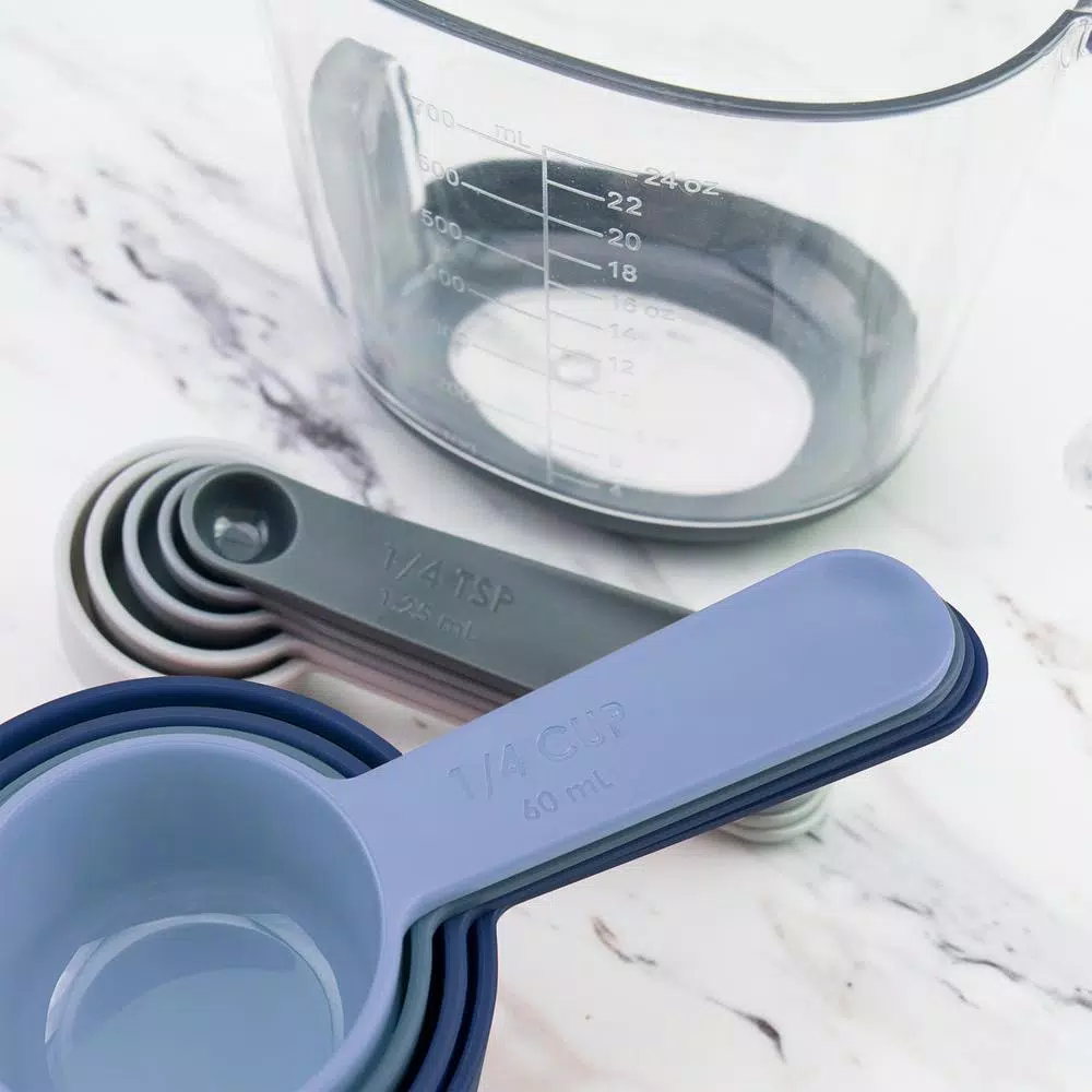 - Etched markings: easy-to-read markings wonβt fade over time, measurements are etched into the measuring tools to ensure they can be read with ease and wonβt fade in the dishwasher, spoons and cups feature ml measurements as well as cups