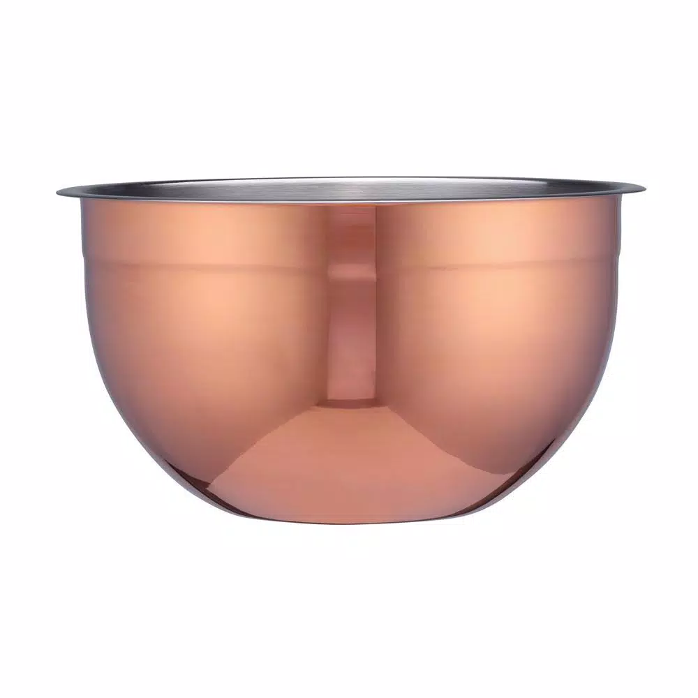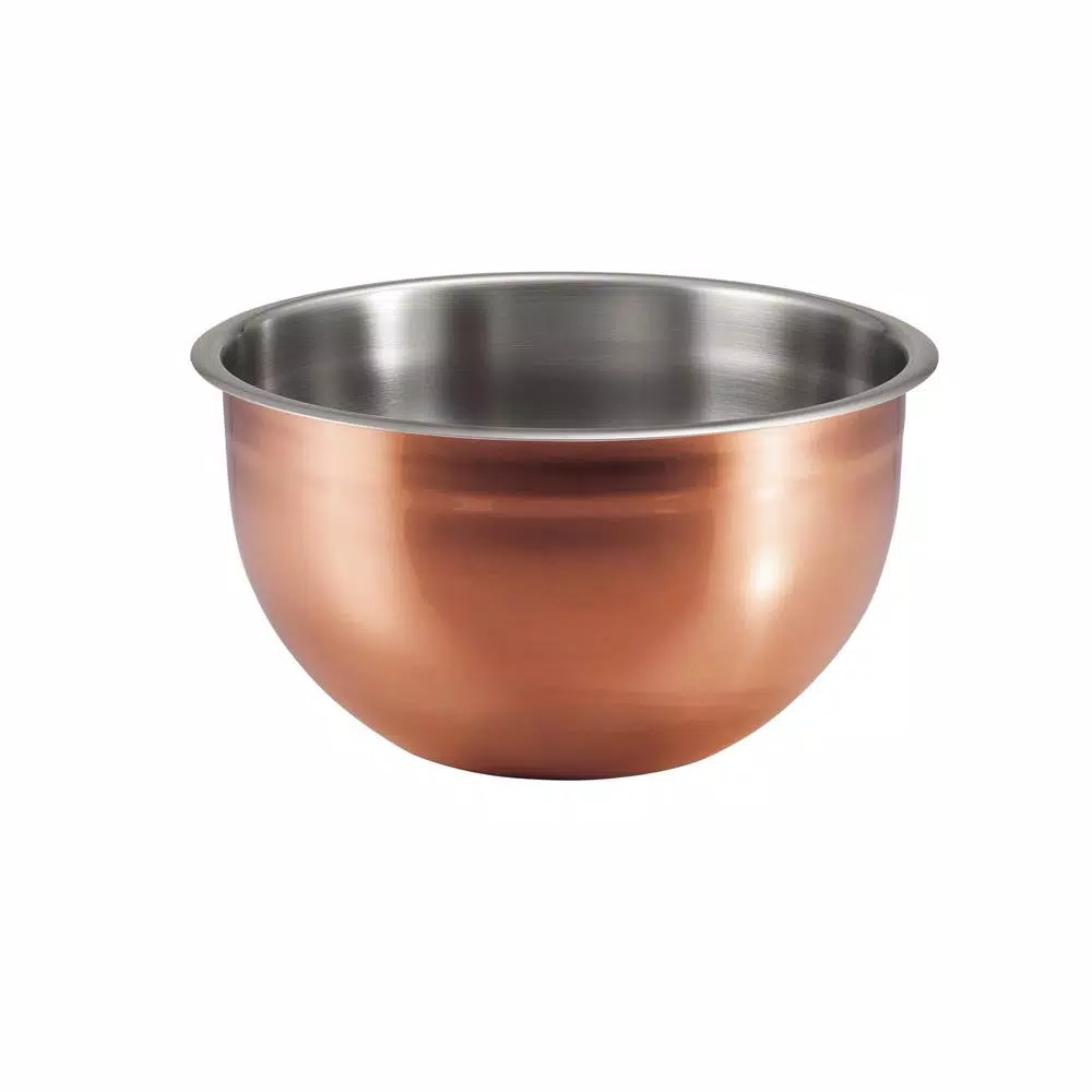 Prep and serve in style with Tramontanas heavy-gauge the Copper Clad Mixing Bowl. The bowl is ideal for mixing ingredients, whisking eggs, kneading dough, or storing and serving food. The bi-ply clad construction consists of a premium 18/10 stain less steel interior with a beautiful copper exterior that adds a touch of elegance to your kitchen and dining table. The mixing bowl is durable, functional, beautiful, and is also designed to conveniently nest for compact storage. Hand-wash only. Lifetime Warranty.