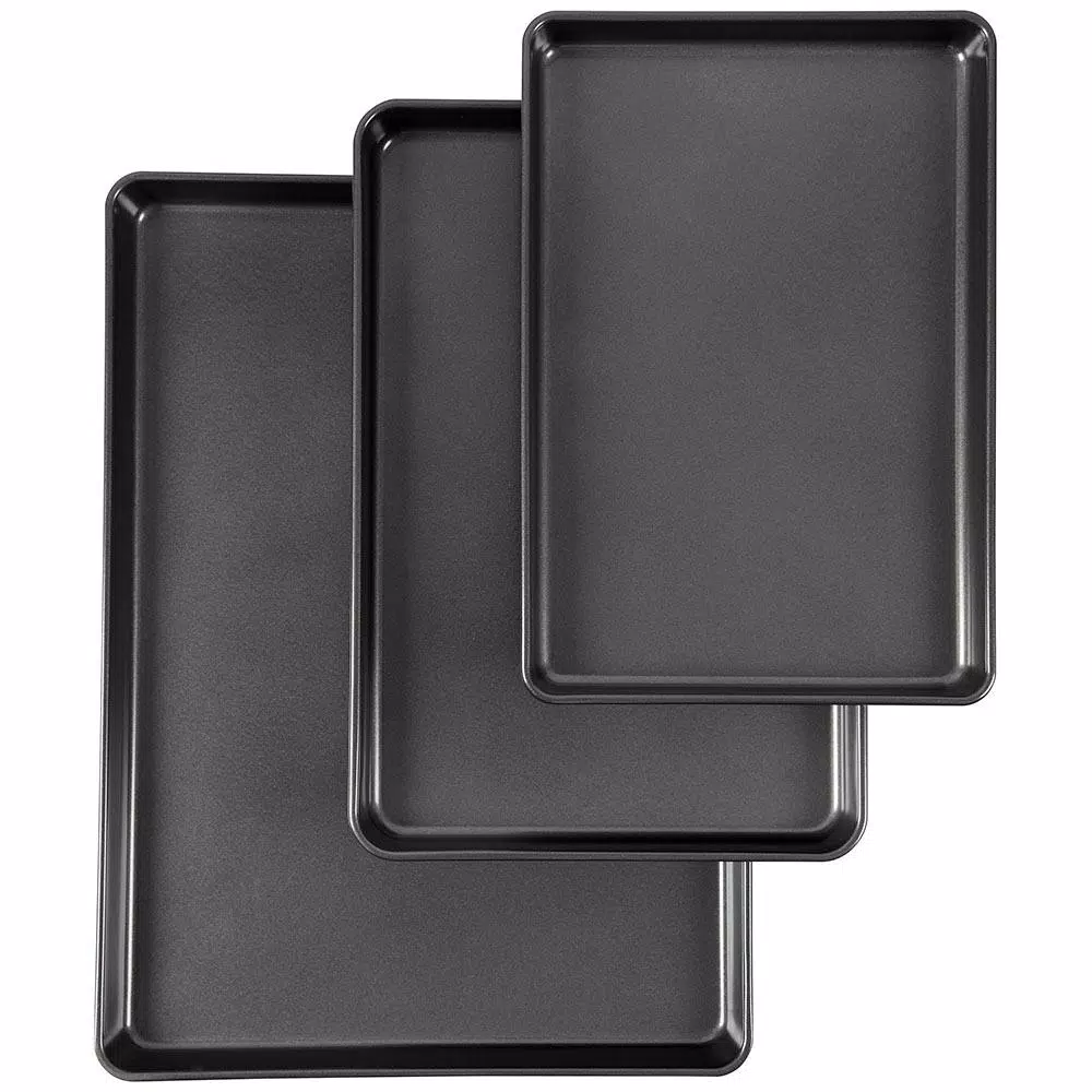- Set of 3 large non-stick cookie sheets for bigger baking jobs