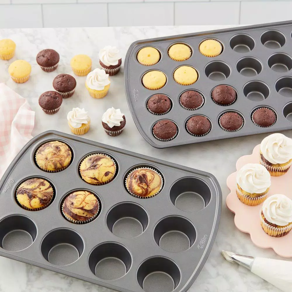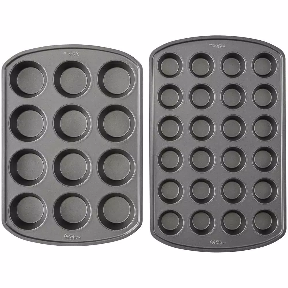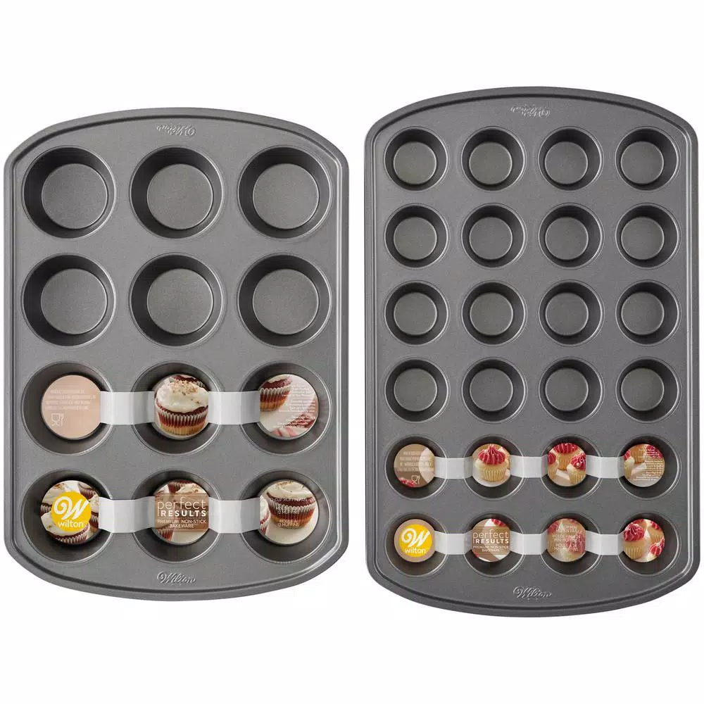 The Wilton Perfect Results Premium Non-Stick Muffin Pan Set is a great addition to any kitchen and allows you to bake cupcakes or muffins in mini or standard sizes. Pans feature a non-stick coating for easy release. Pans are also dishwasher safe for quick clean-up.
